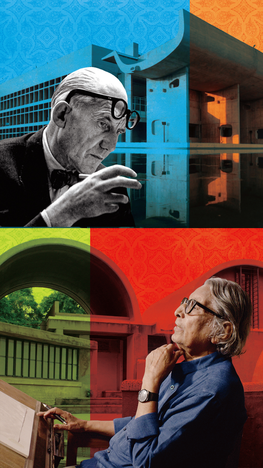 時代に適合しなくなった伝統的な都市や建築から脱却し、壮大な実験を仕掛けたコルビュジエ。西洋のモダニズムを継承しながらも、インドの精神性や生活様式に根ざした建築を目指したドーシ。新しい建築理念によって未来を築こうした二人は、建築によってどのような対話をし、何を遺したのか。そして、彼らがいなくなった世界で、その建築物とビジョンはどのように変容し、継承されていくのか。2つのドキュメンタリーで紐解く。